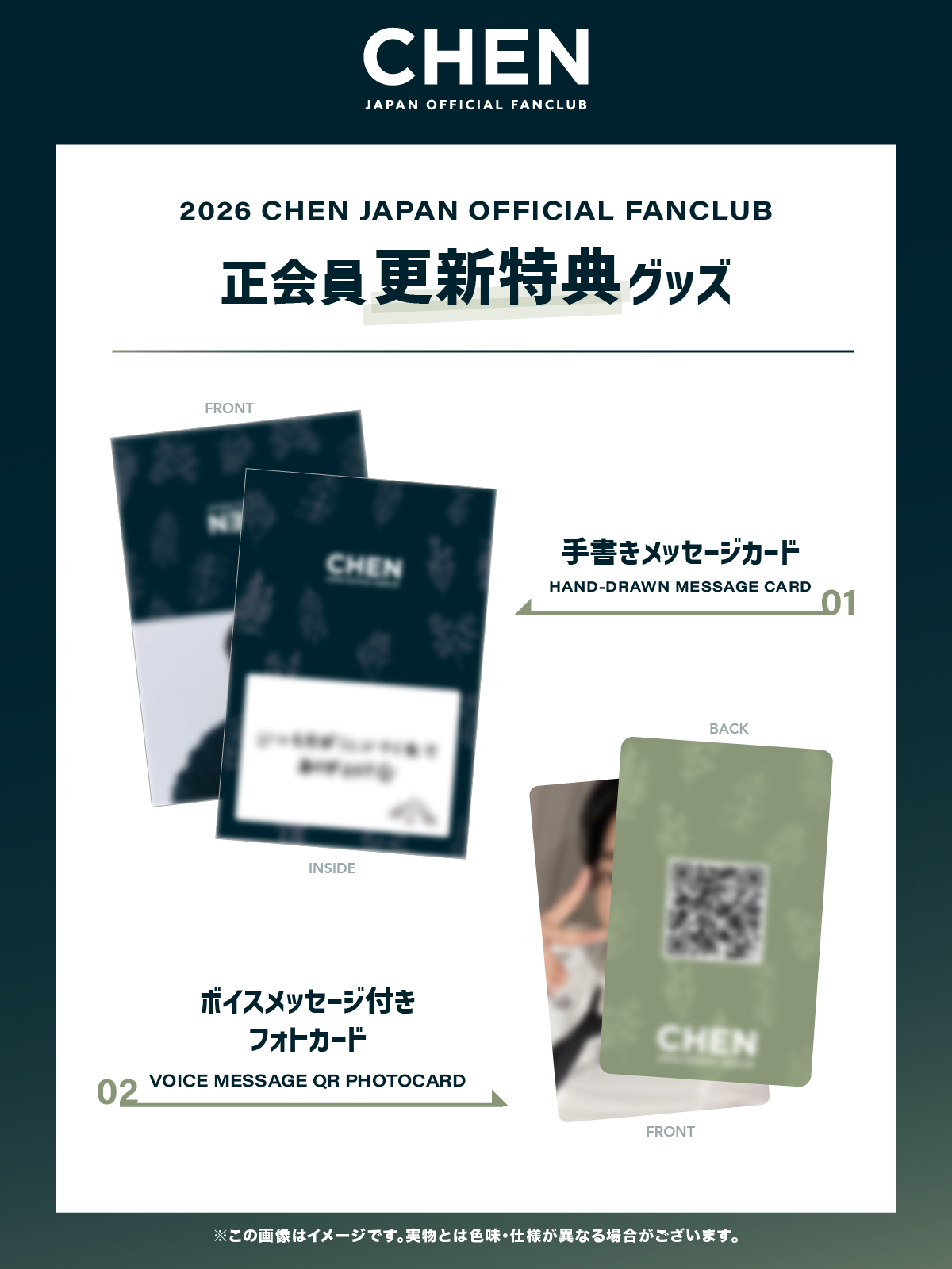 2026 CHEN JAPAN OFFICIAL FANCLUB正会員更新特典グッズについてご案内いたします。